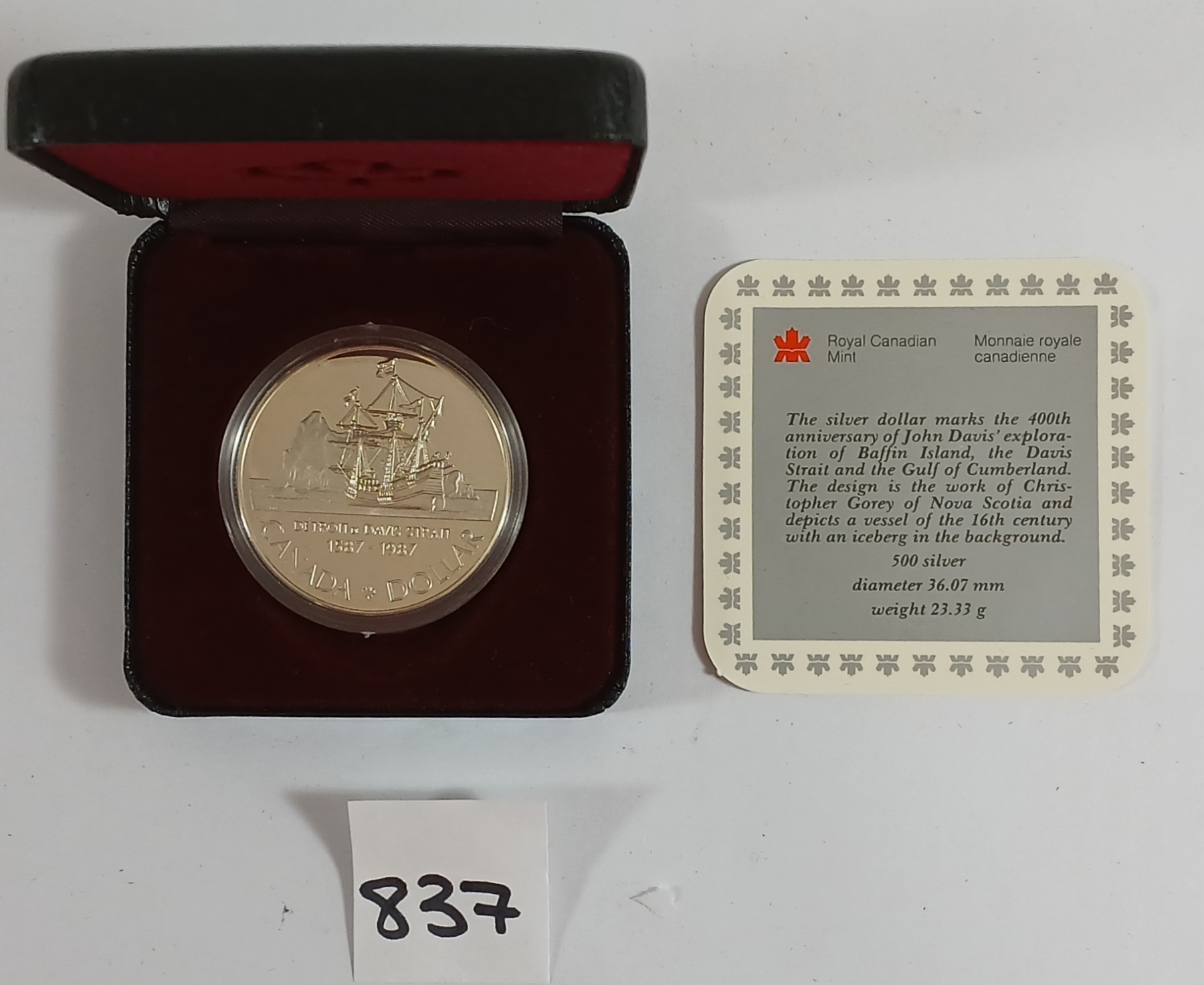 1987 RCM SILVER DOLLAR - 400TH ANNIVERSARY OF JOHN DAVIS' EXPLORATION OF BAFFIN ISLAND