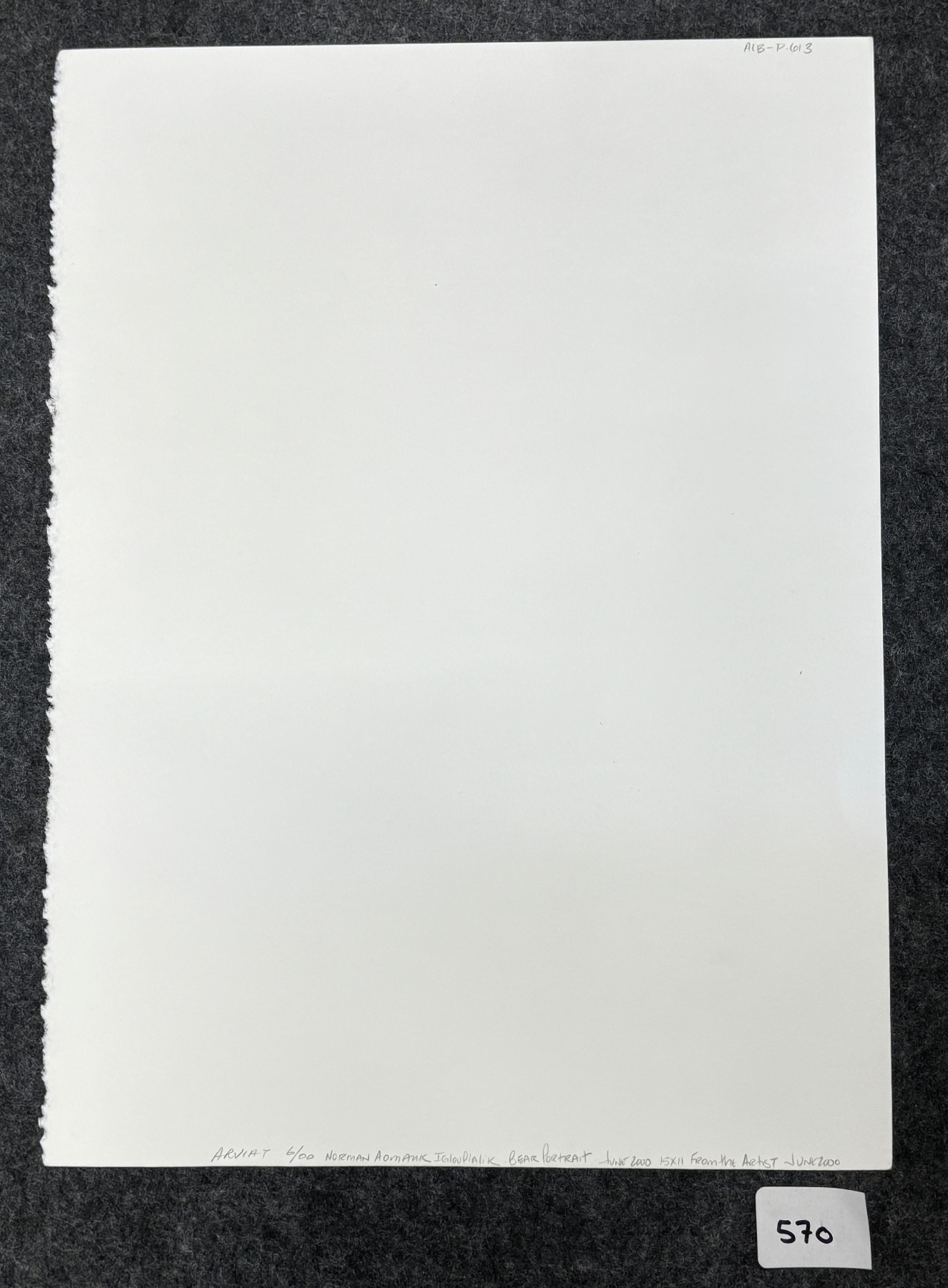 NOTE: 11.5 X 15IN - MADE IN ARVIAT - CIRCA JUNE 2000