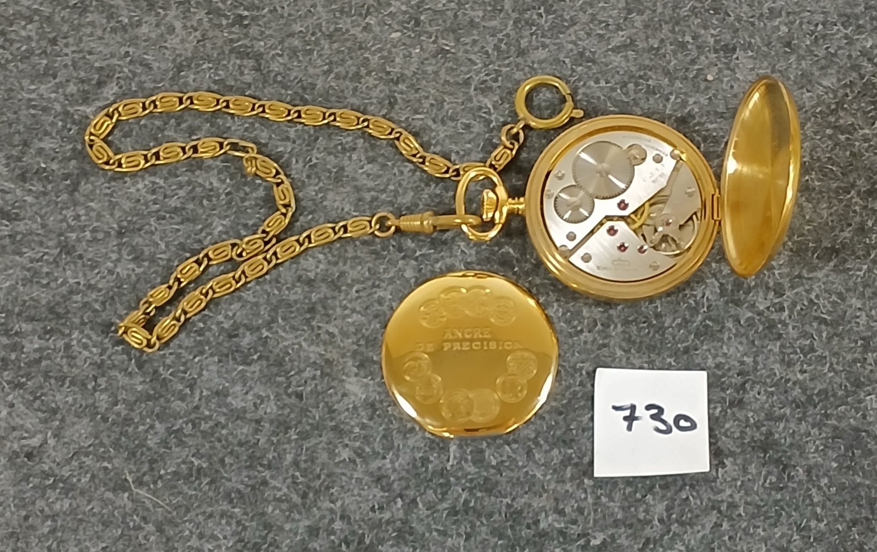 NOTE: UNADJ - SWISS - RUNNING CONDITION UNKNOWN - 13IN L. CHAIN - CASE MARKED W/ ANCRE DE PRECISION - XMAS 1975