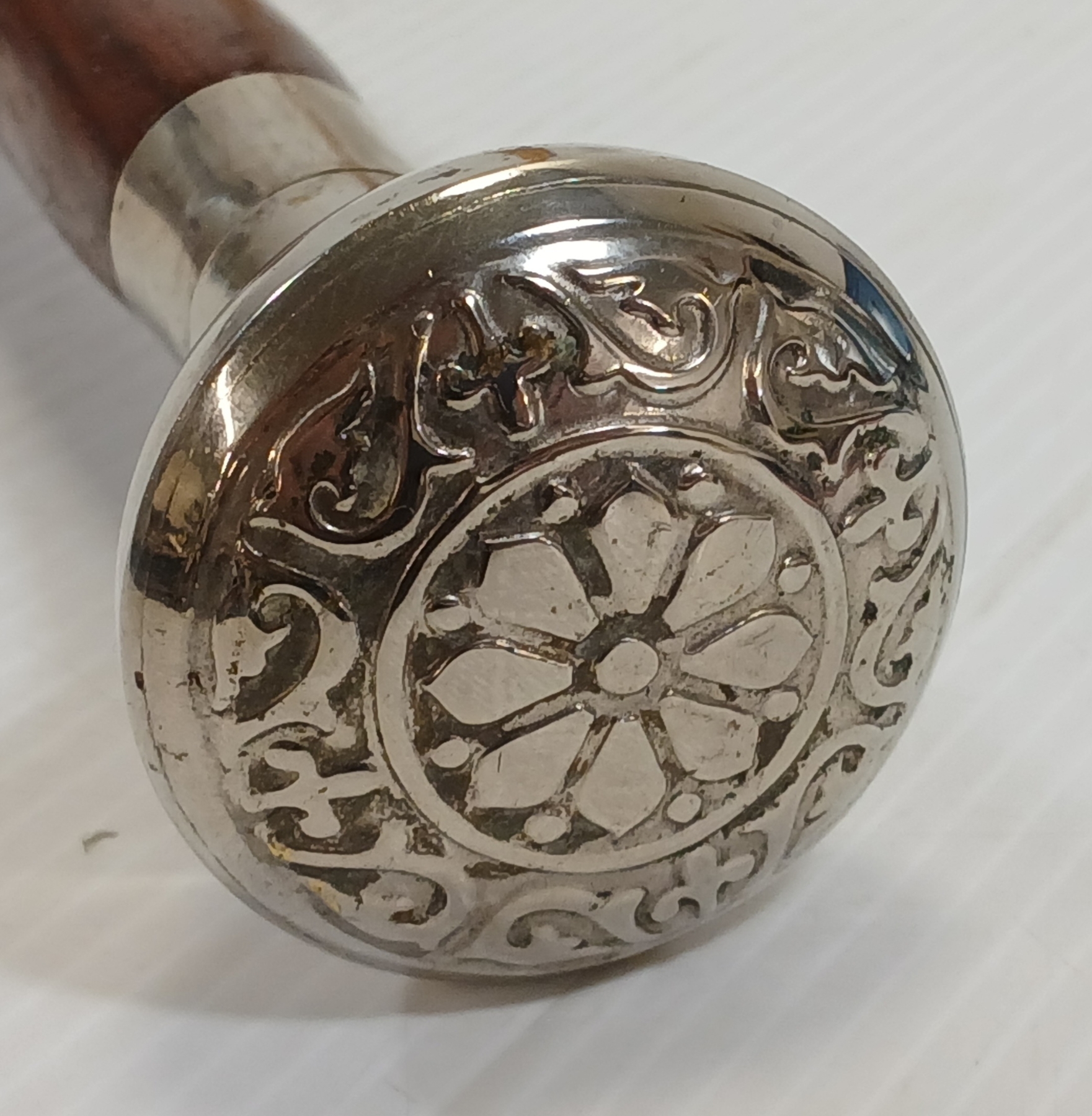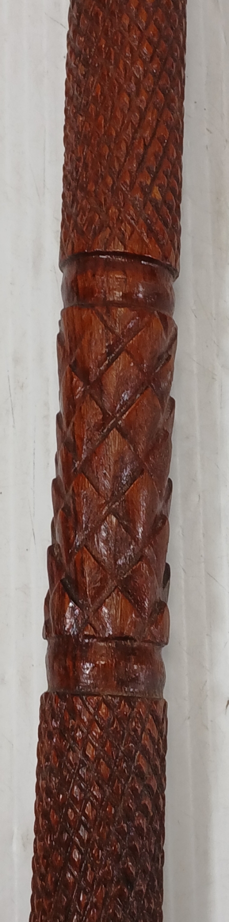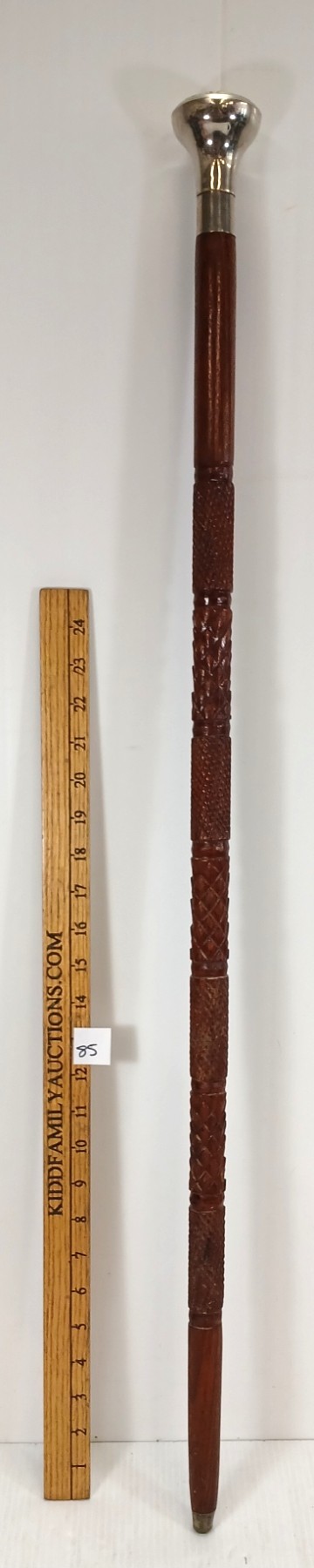 CARVED WALKING STICK W/ DESIGNED SILVER POMMEL