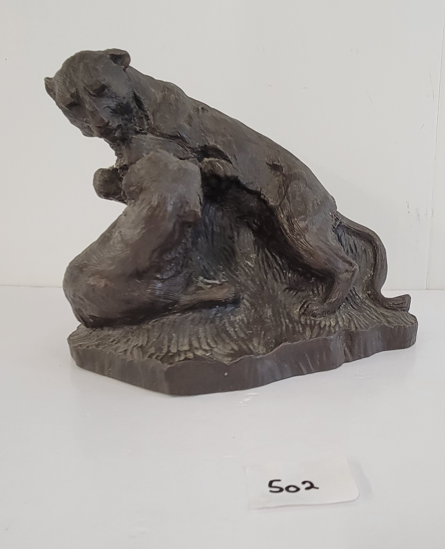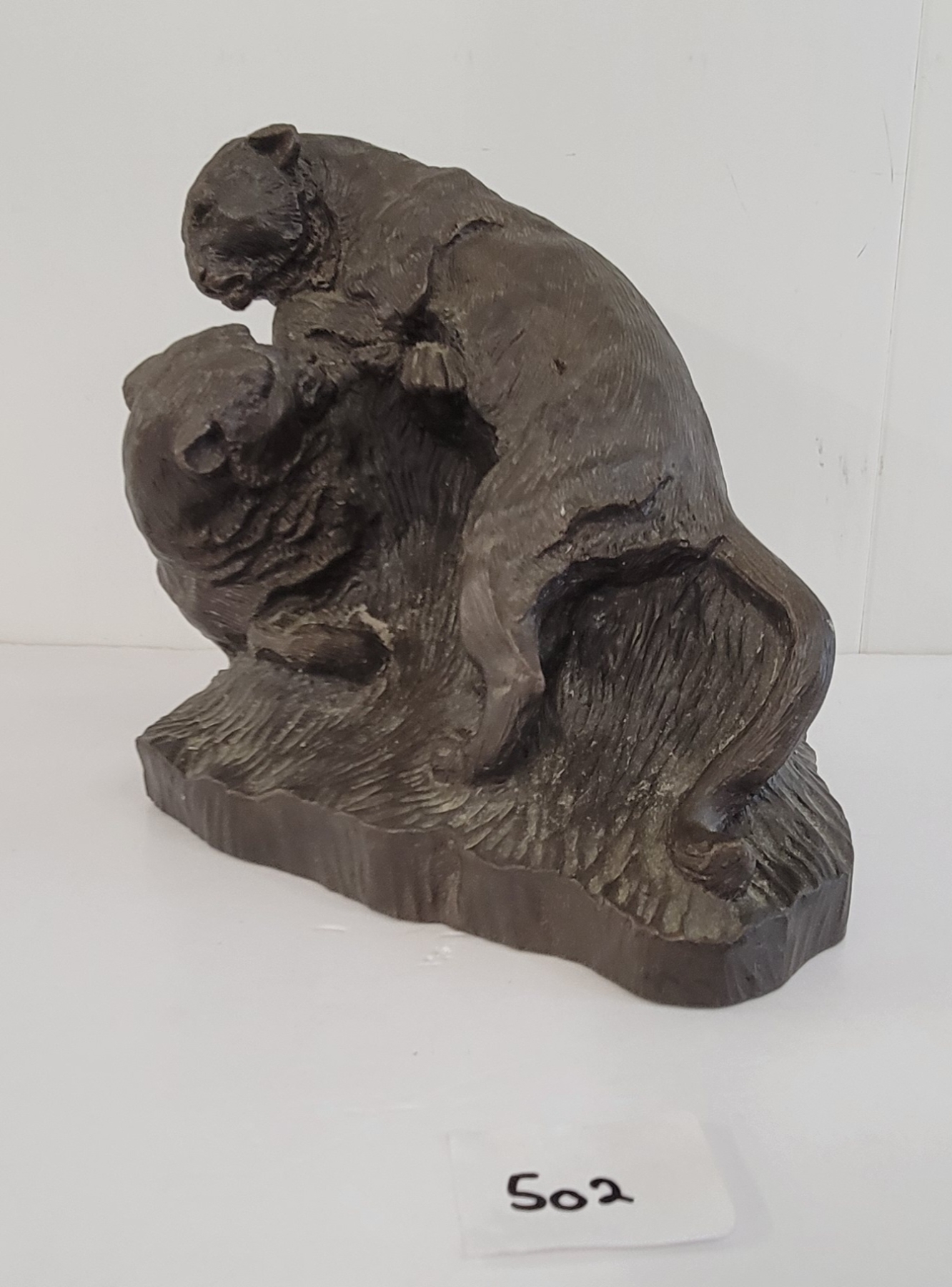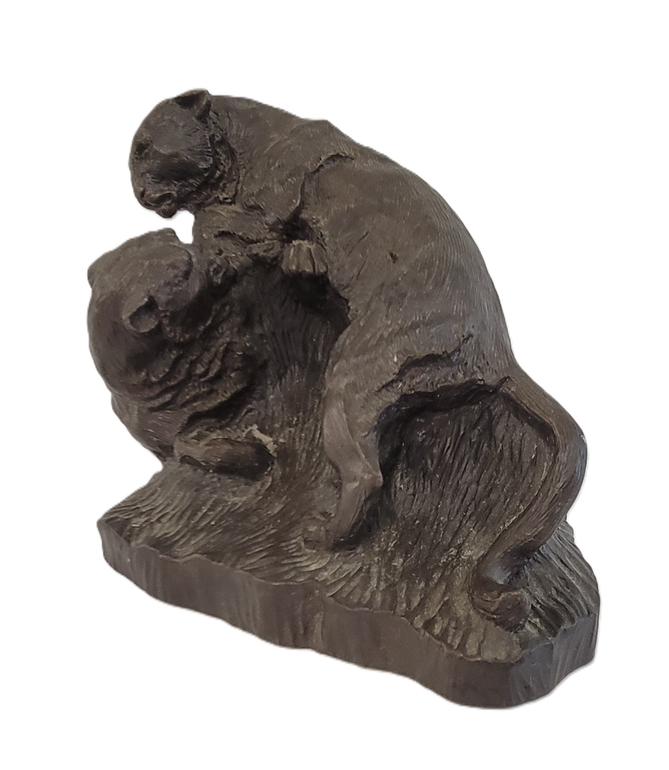 FIGHTING MOUNTAIN LIONS BY J. CHESTER - BRONZE(?)