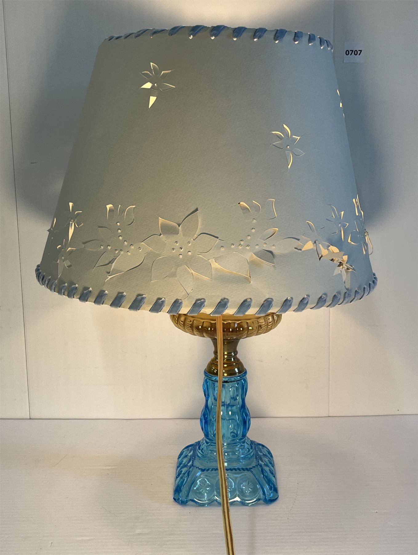NOTE: 10 X 11 X 21.5IN - WORKING WHEN TESTED - PAPER LAMPSHADE - SIGNS OF WEAR