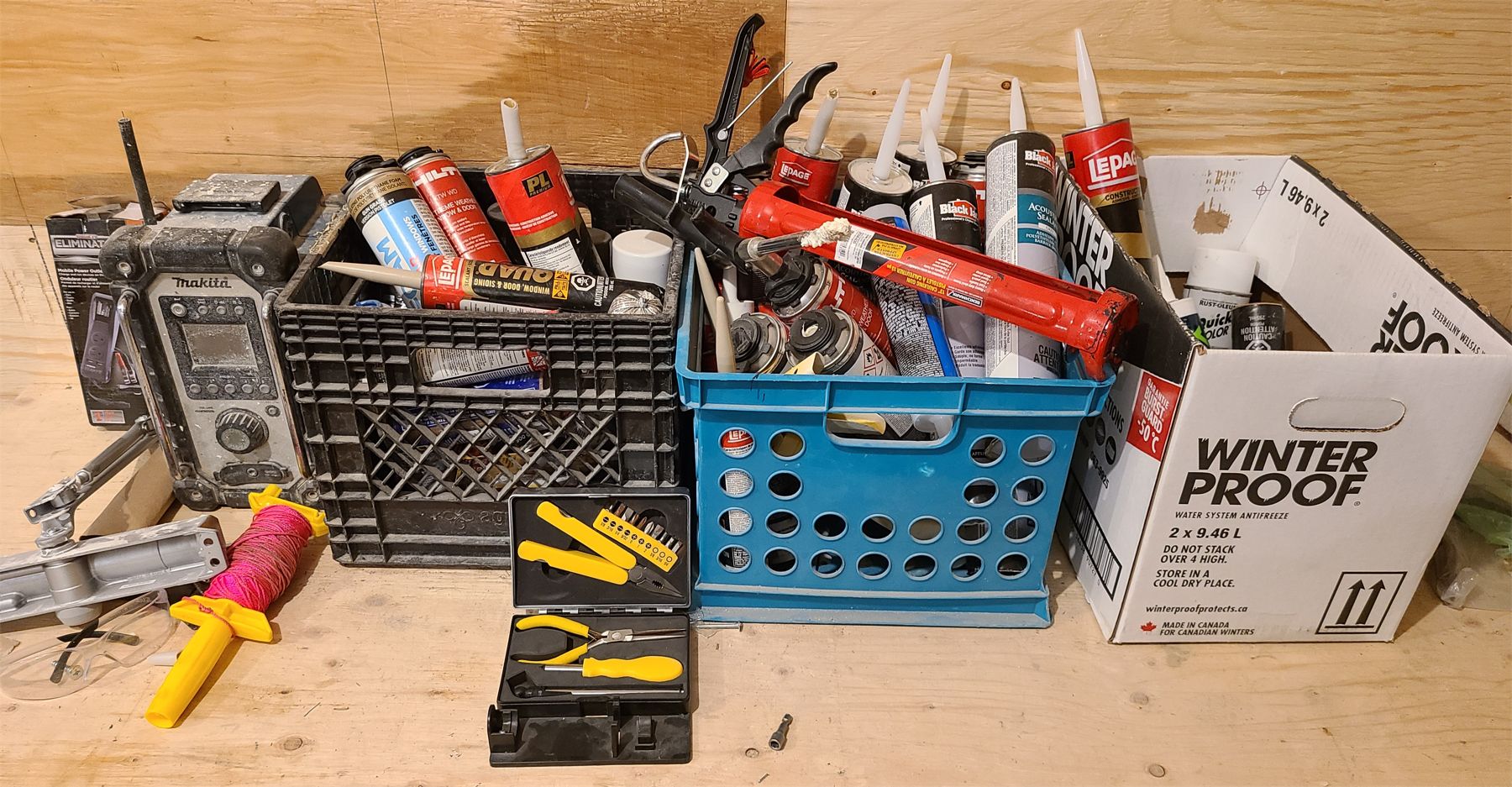 JOB LOT - CAUKING, SPRAY PAINT, MAKITA RADIO, ETC