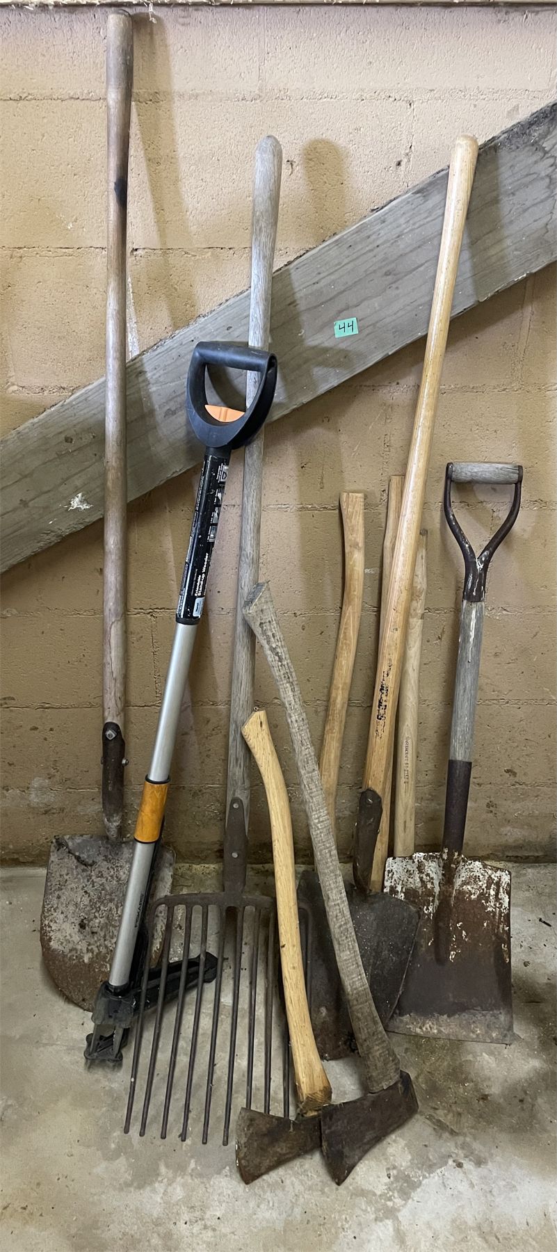 INCLUDES: FORK, SHOVELS, AXES & HANDLES.