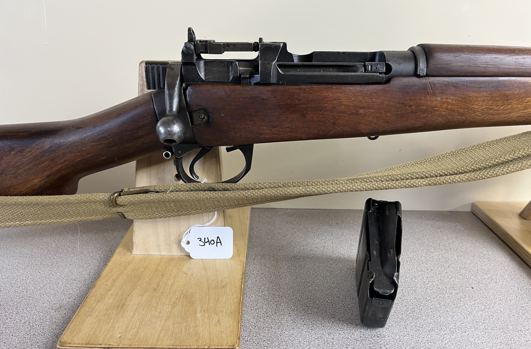 CONDITION: G - VG OVERALL INCL BORE. SPECS: 20.5IN BBL W/ MUZZLEBRAKE. EXTRAS: PERIOD CANVAS SLING. 1X MAG. S/N: V1174.