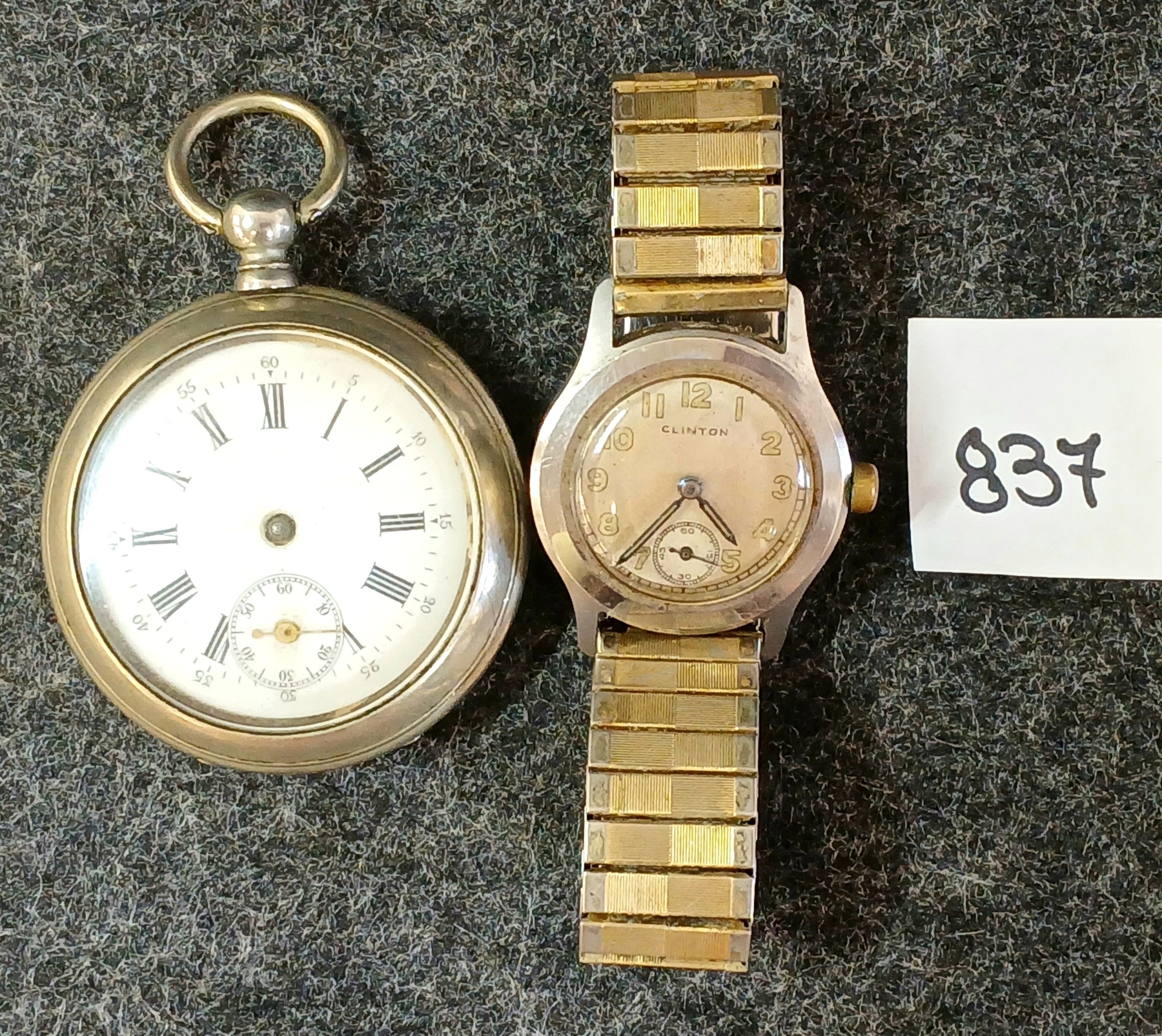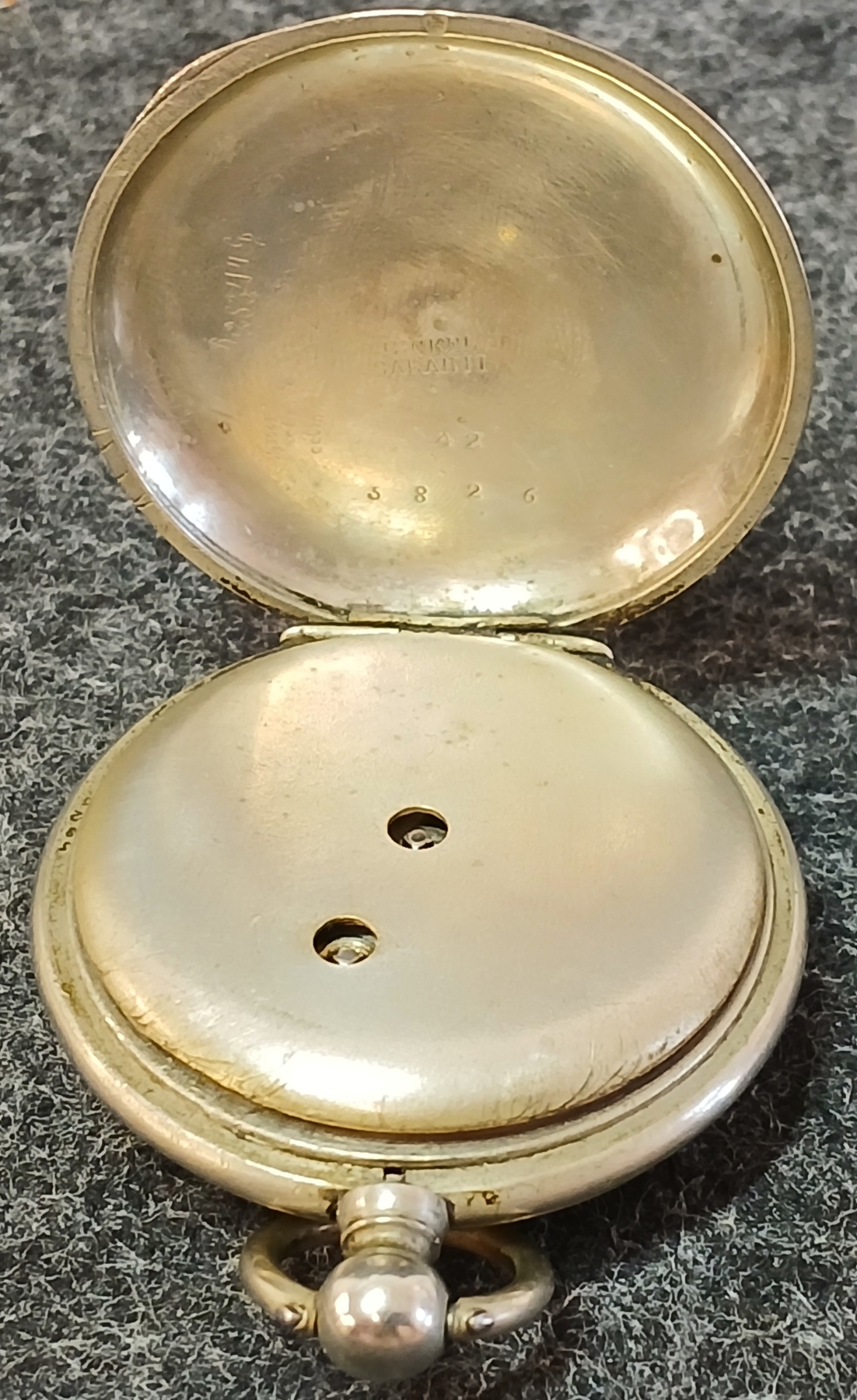 NOTE: WORKING CONDITION UNKNOWN - POCKET WATCH SER. 5826 - MISSING HOUR HAND - SEE ALL PHOTOS - WRISTWATCH STAINLESS STEEL - 3IN DIA BAND