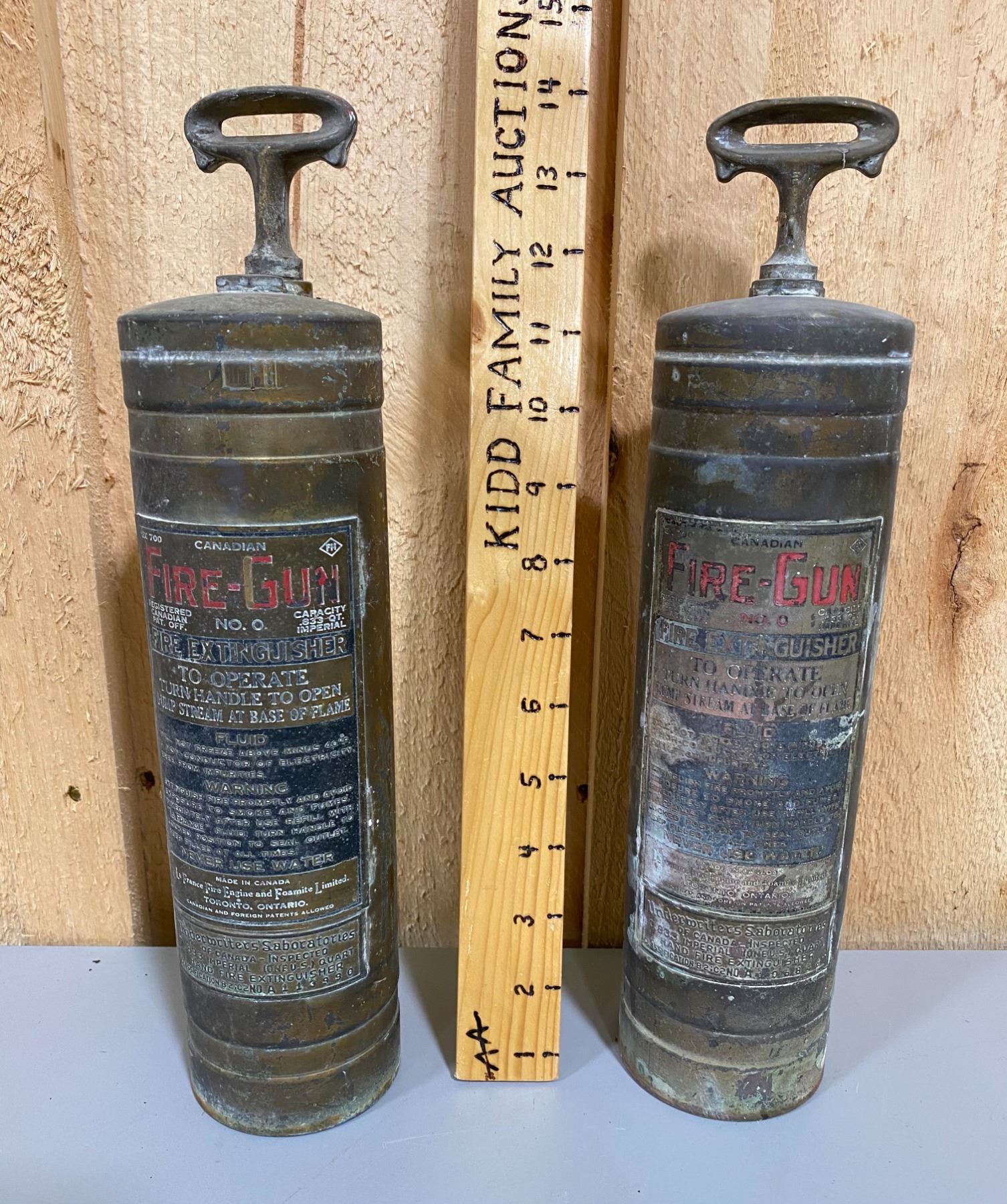 LOT OF 2 'FIRE-GUN' BRASS EXTINGUISHERS