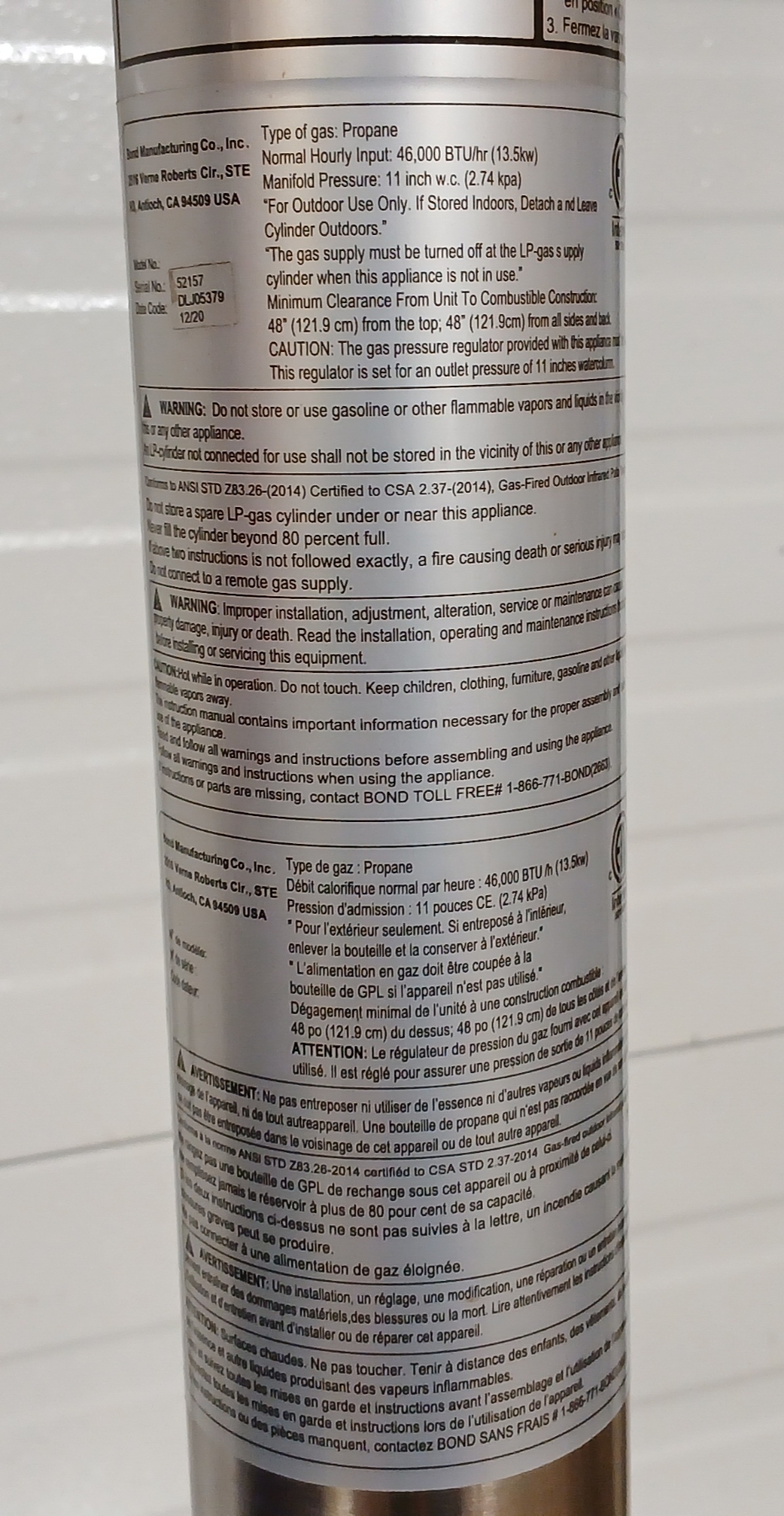 NOTE: APPROX 20 X 80IN DIAMETER - UNTESTED