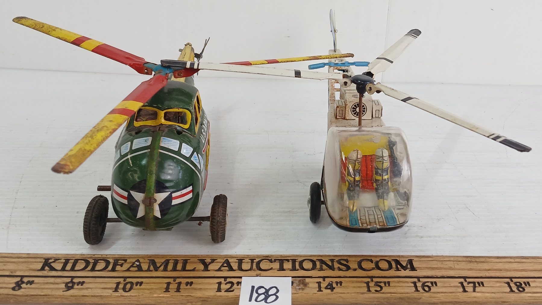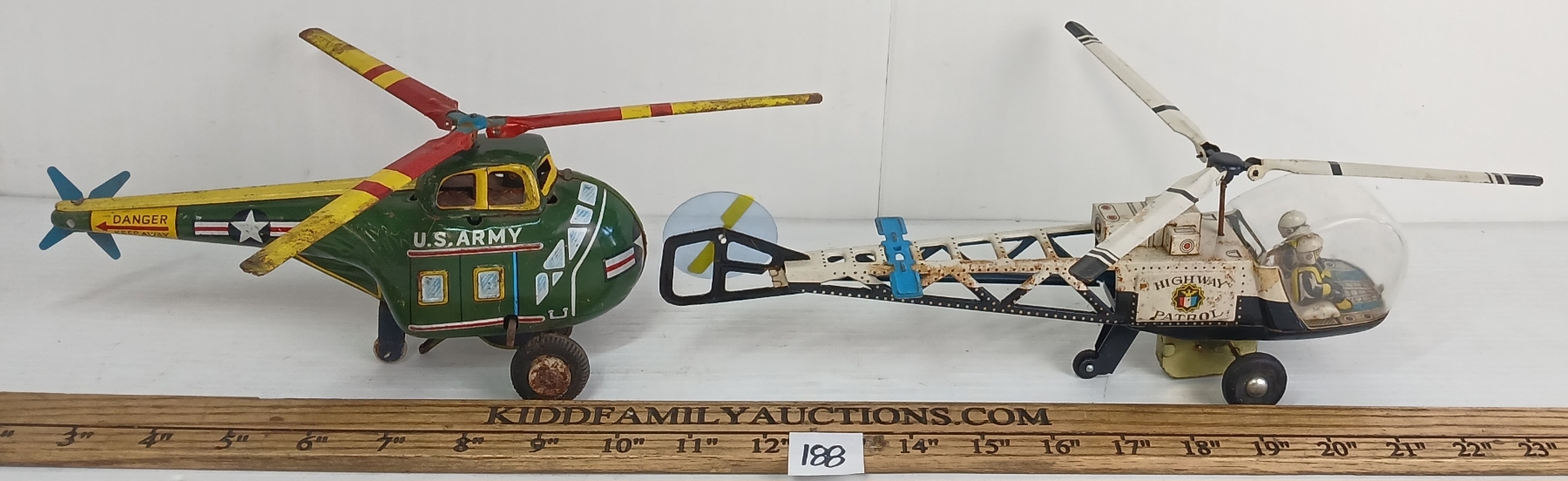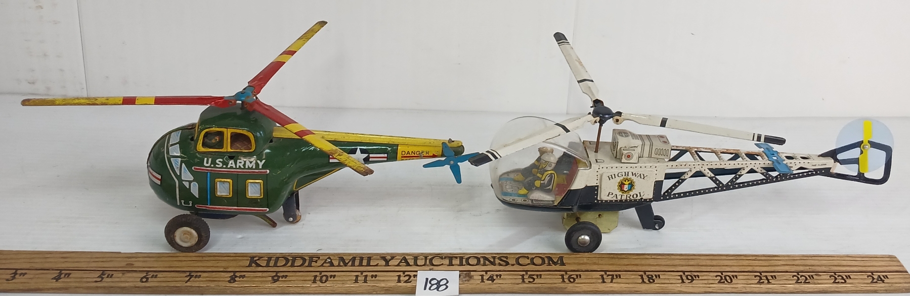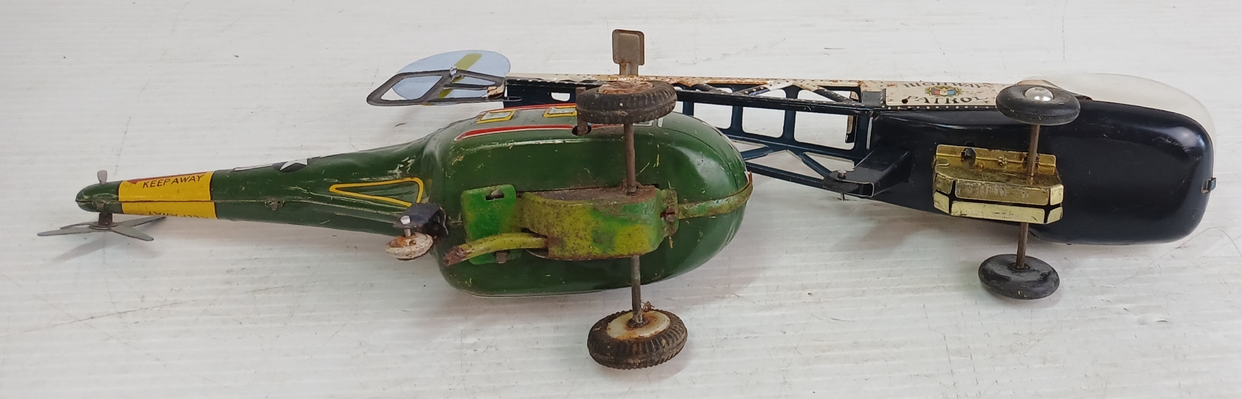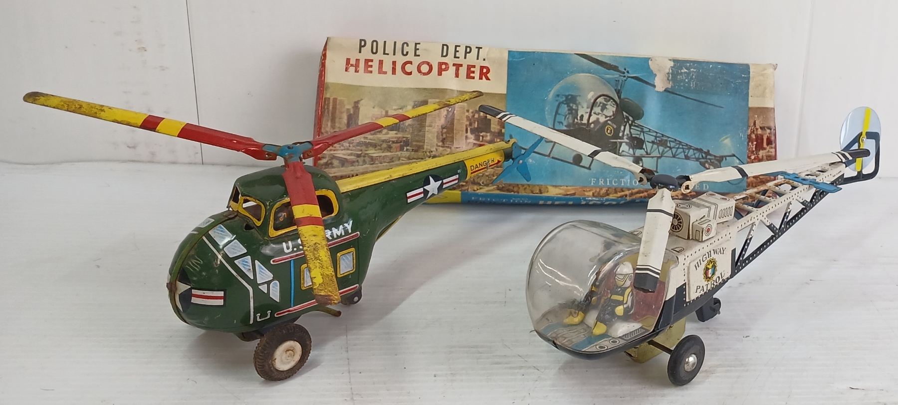 LOT OF 2 - TIN FRICTION & WIND UP ARMY & HIGHWAY PATROL HELICOPTERS