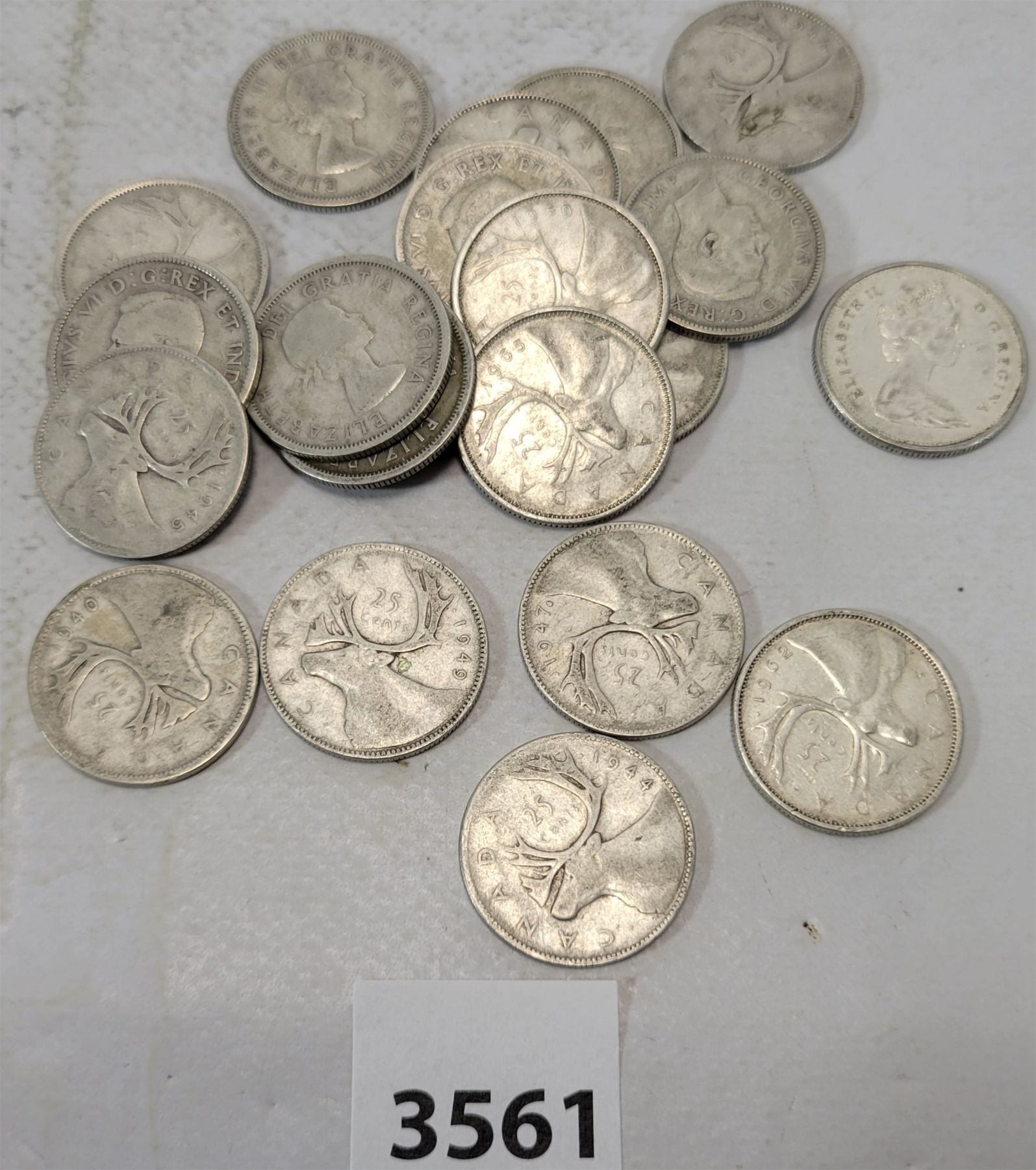 LOT OF 20 - CDN SILVER 25 CENT PCS - PRE 1967