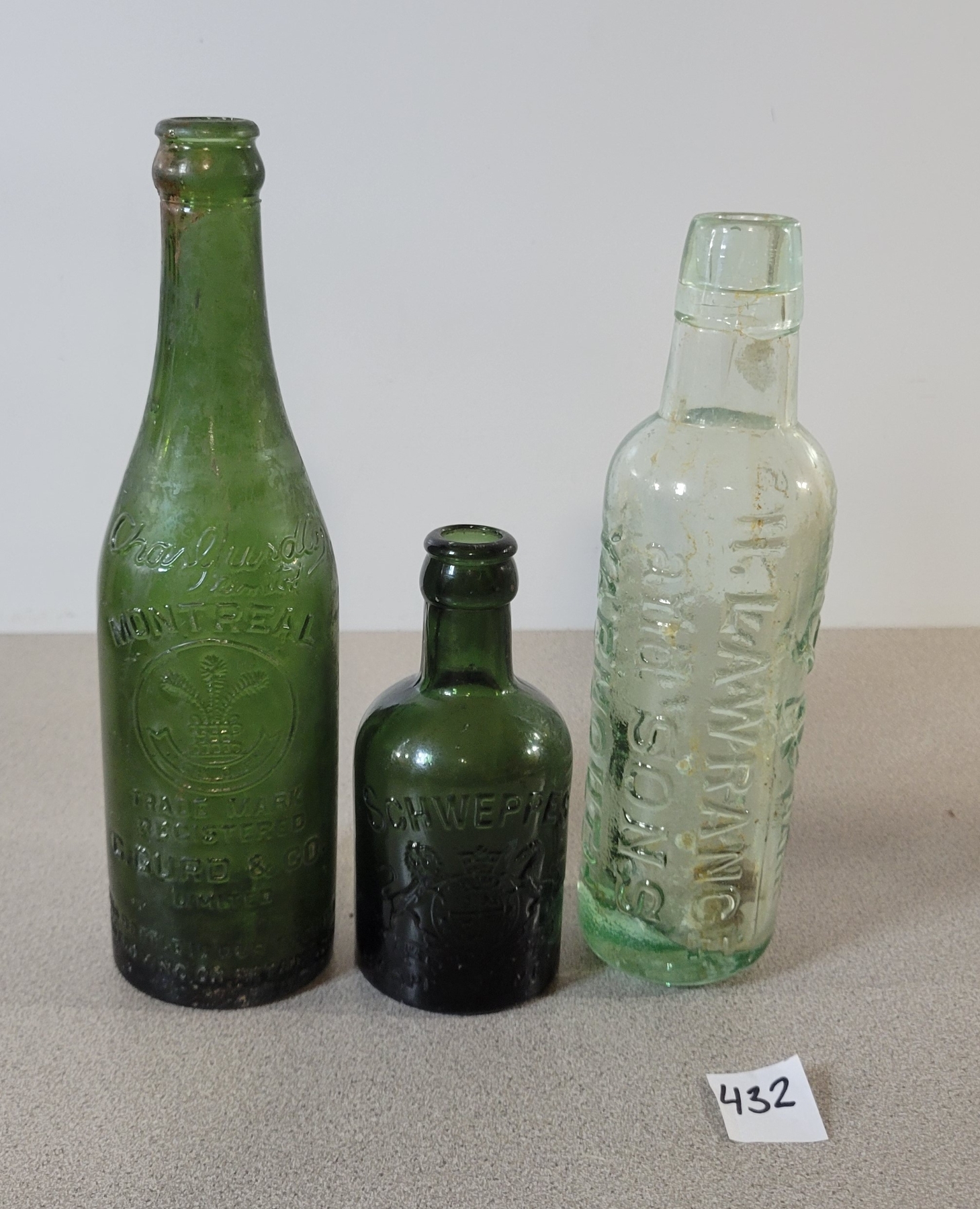 NOTE: MARKED YARMOUTH BECCLES & SAXMUNDHAM - SCHWEPPES - C. GURD & CO. - MONTREAL - CHIPPED BOTTOM