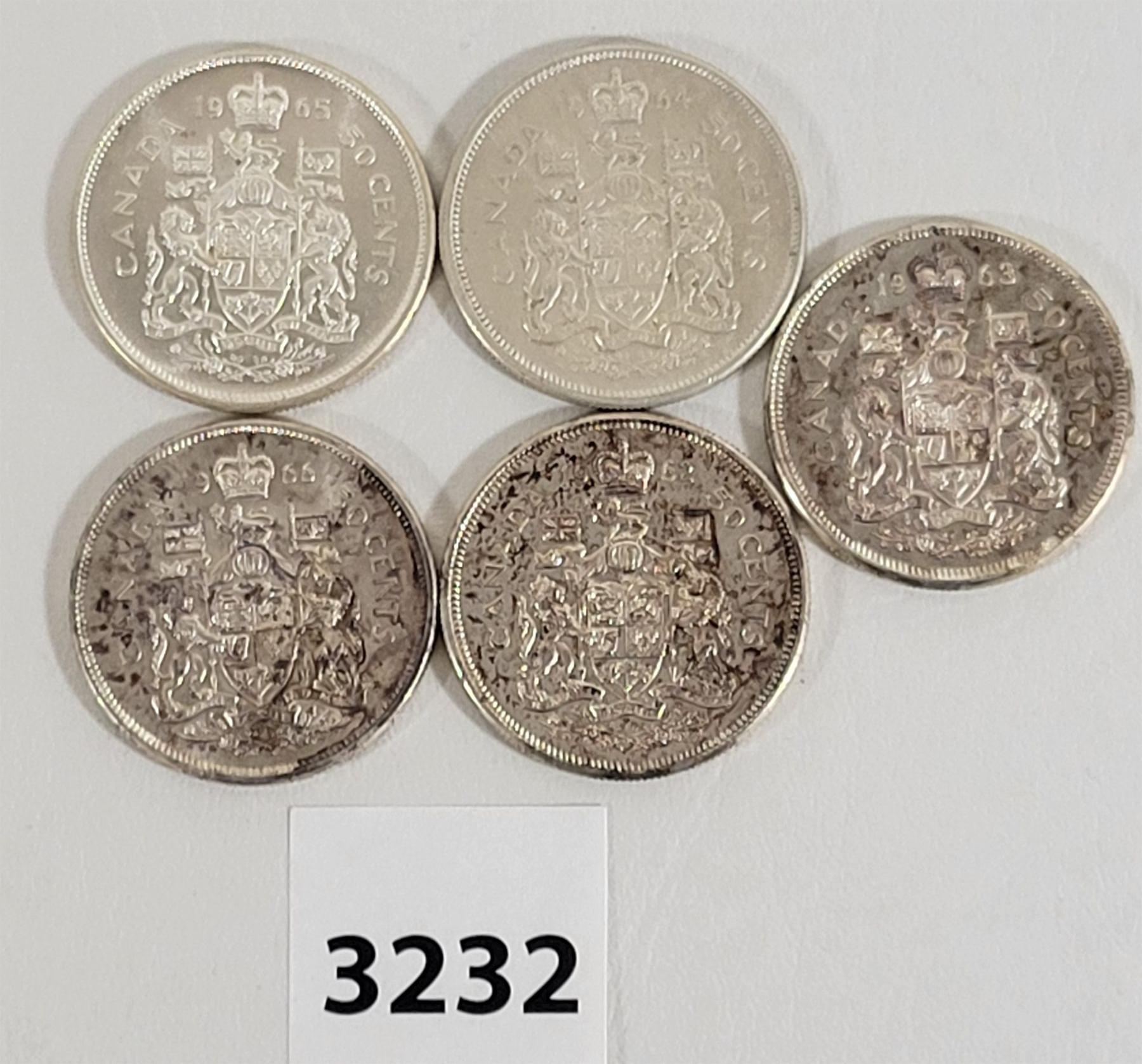 LOT OF 5 - CDN 50 CENT PIECES - 1962, '63, '64, '65 & '66