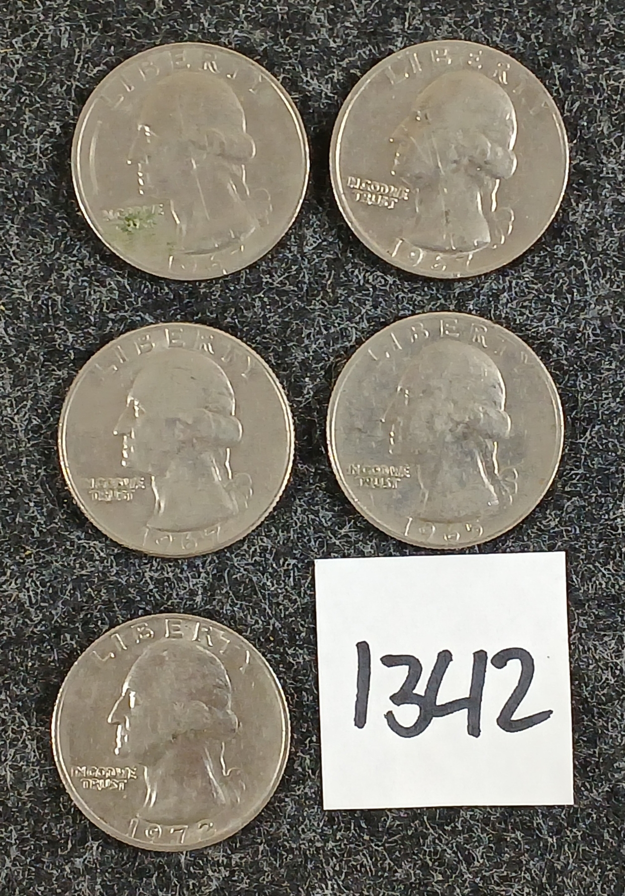 LOT OF 5 - U.S. 25 CENT COINS - 1965 TO 1972