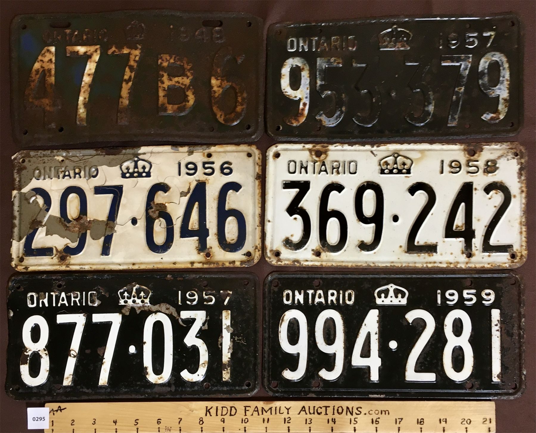 LOT OF 6 - ONTARIO LICENSE PLATES - 1948, 56, 57, 58, 59