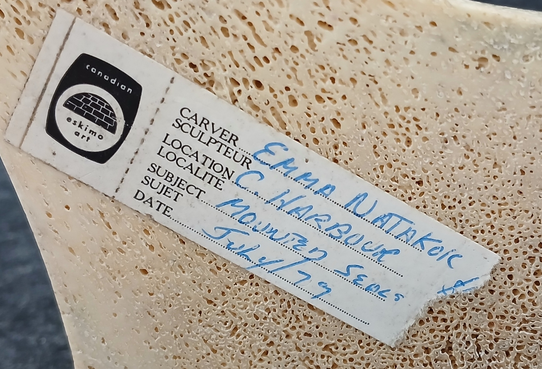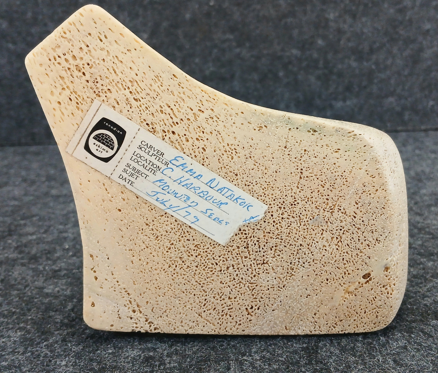 NOTE: 4 X 4 X 5IN - MADE IN CORAL HARBOUR - CIRCA JULY 1979