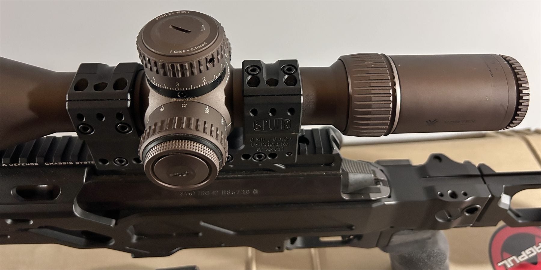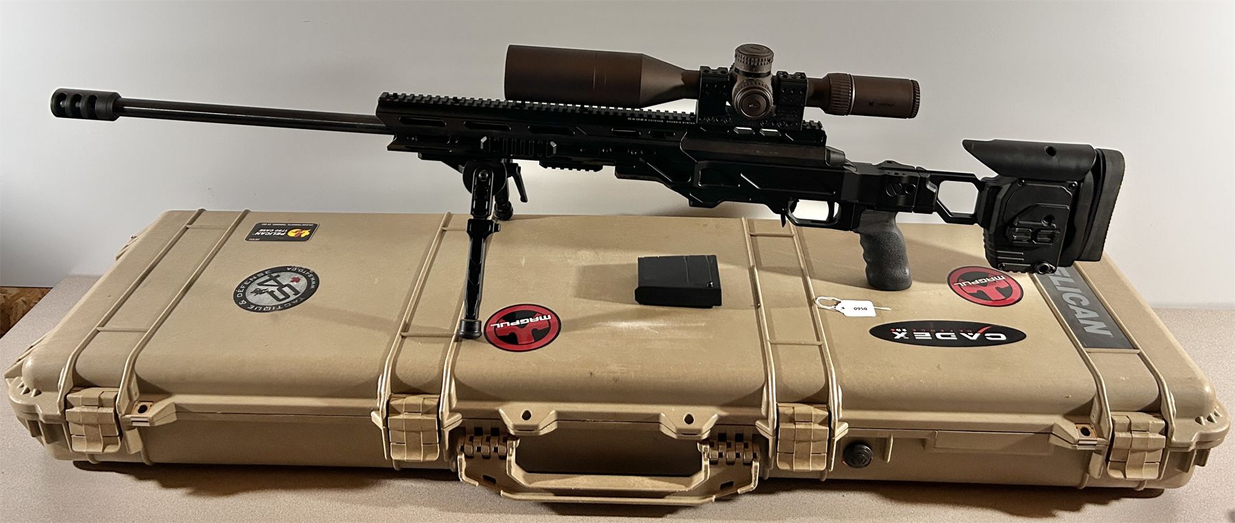 CONDITION: VG OVERALL. BORE G - VG. SPECS: LONG RANGE TARGET RIFLE. CUSTUM CADEX CHASSIS. 30 INCH BARREL. MUZZLE BRAKE. EXTRAS: CADEX FALCON BI-POD. SPUHR SCOPE MOUNT. VORTEX RAZOR HD GEN 2 4.5-27 X 56 SCOPE. PELICAN 1750 HARD CASE. S/N: H86730.