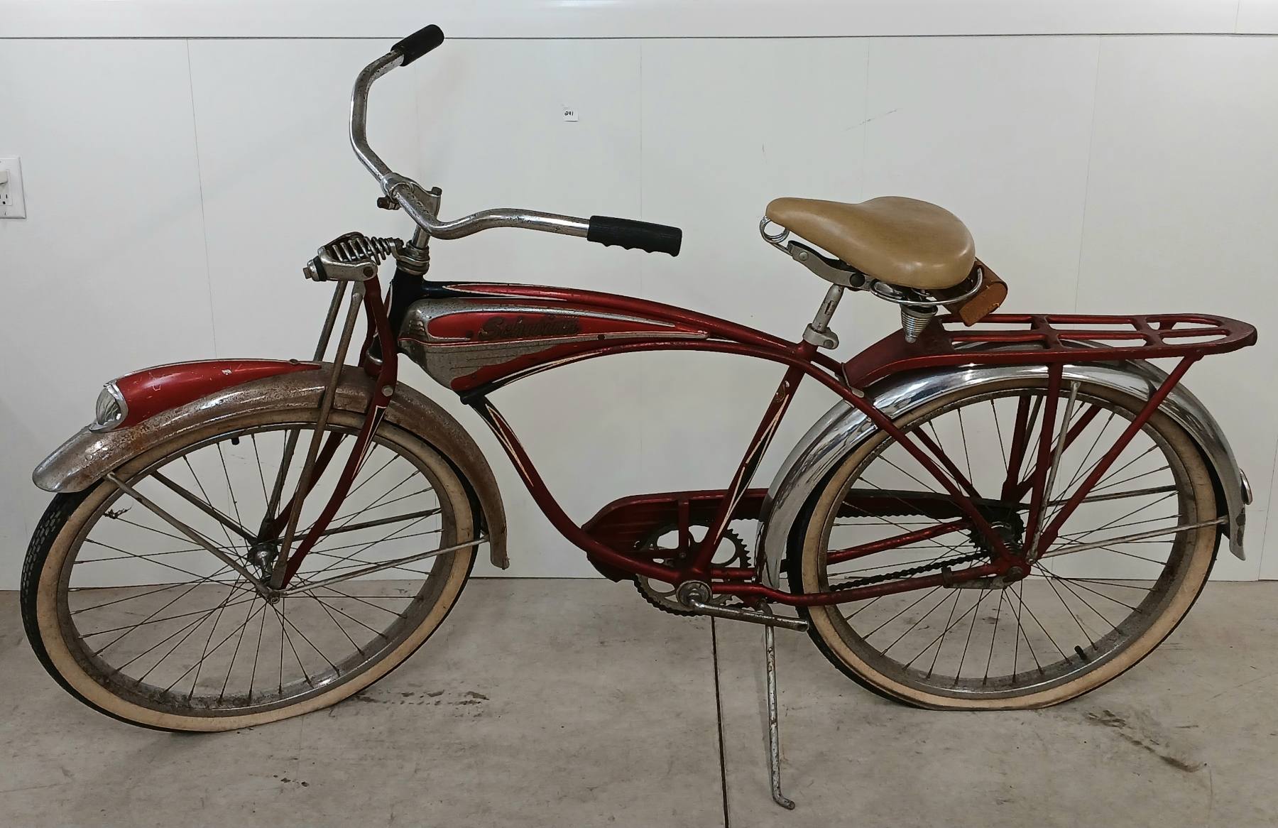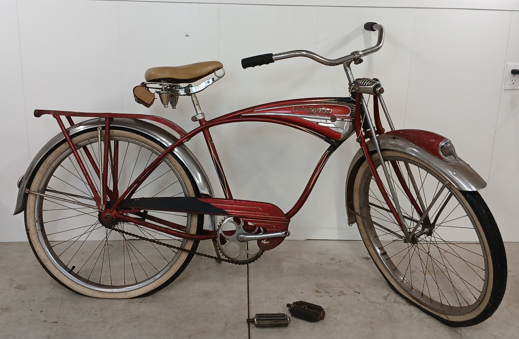 NOTE: TIRES 26 X 2.125 - TIRES SHOW WEAR - LIGHTS UNTESTED - LEATHERSEAT W/ OUCH - NOT ORIGINAL PEDALS - 33IN SEAT HEIGHT