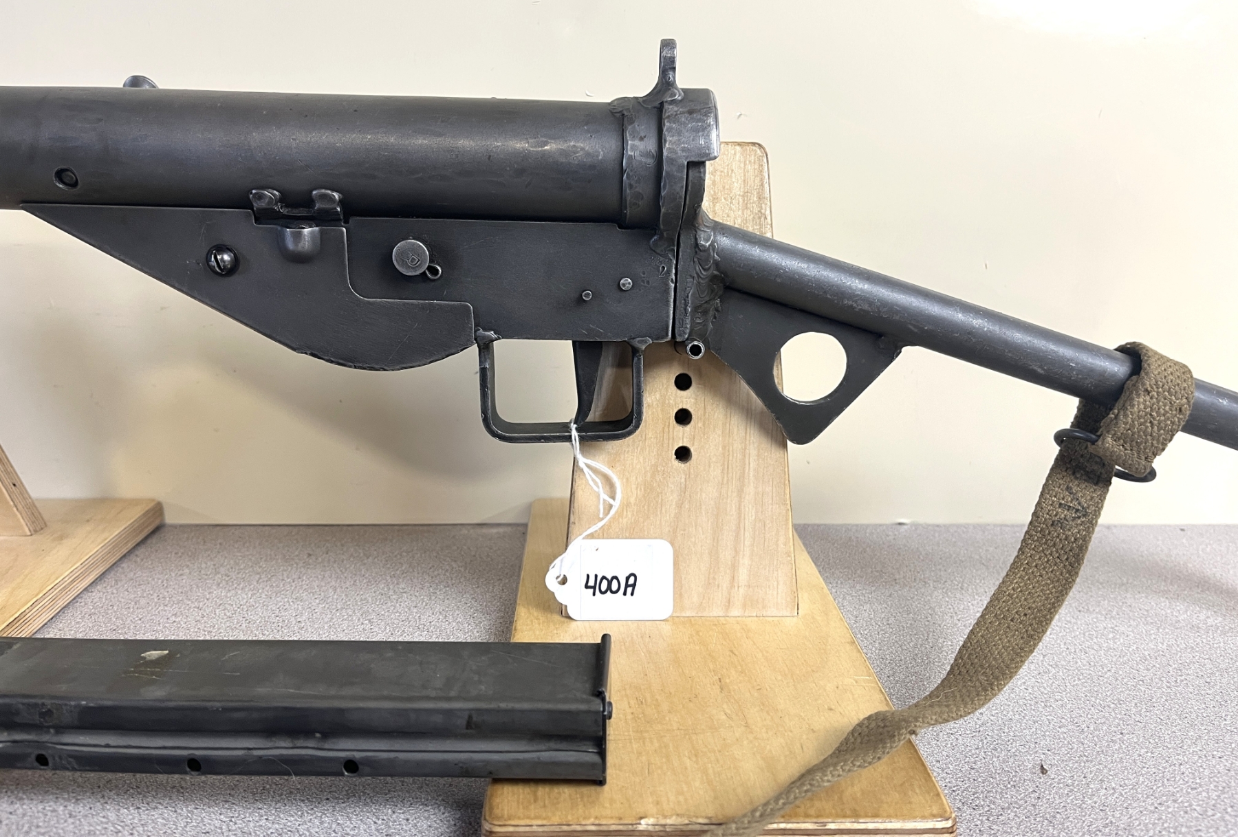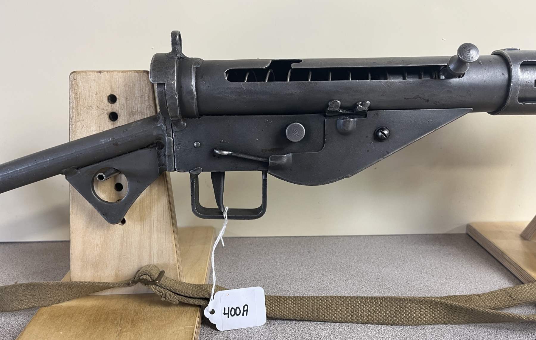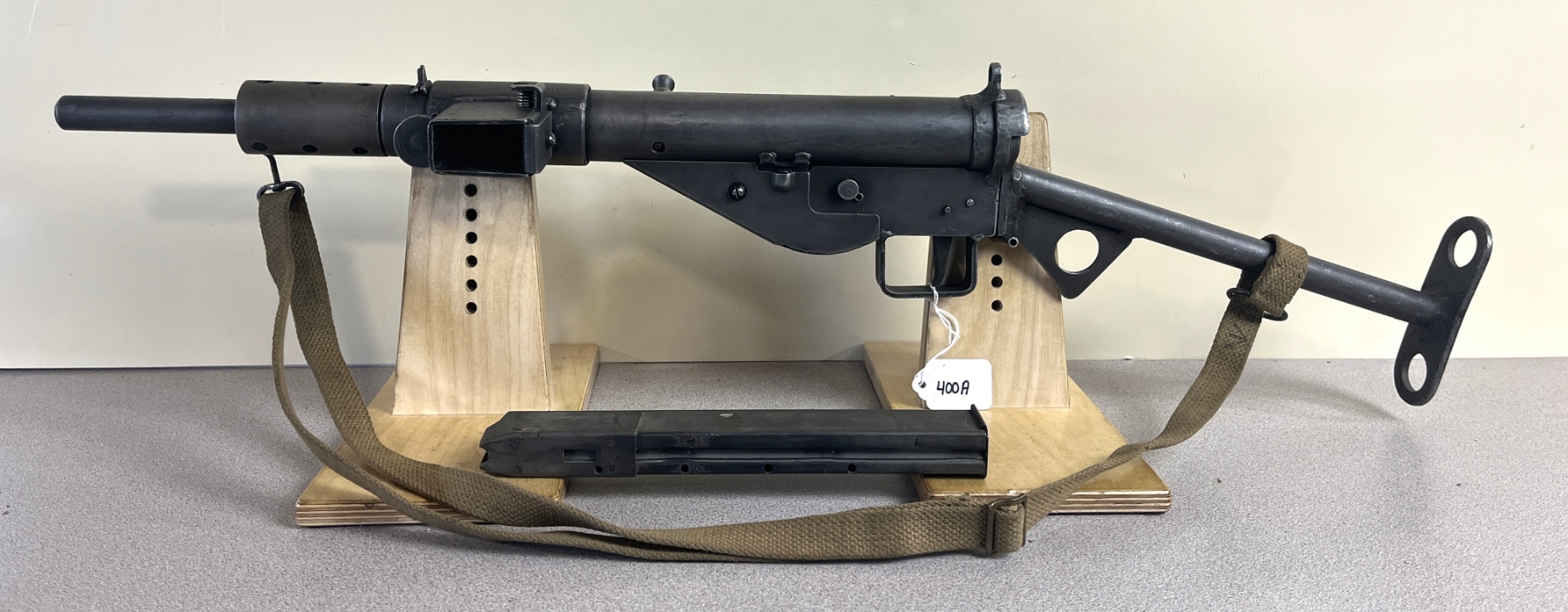 CONDITION: G OVERALL. DEACTIVATED BY WELDING OF CHAMBER. SPECS: 8 1/4IN BBL. INCL 1X MAG. MARKED W/ BRITISH BROAD ARROW. EXTRAS: PERIOD CANVAS SLING. S/N: S14941.