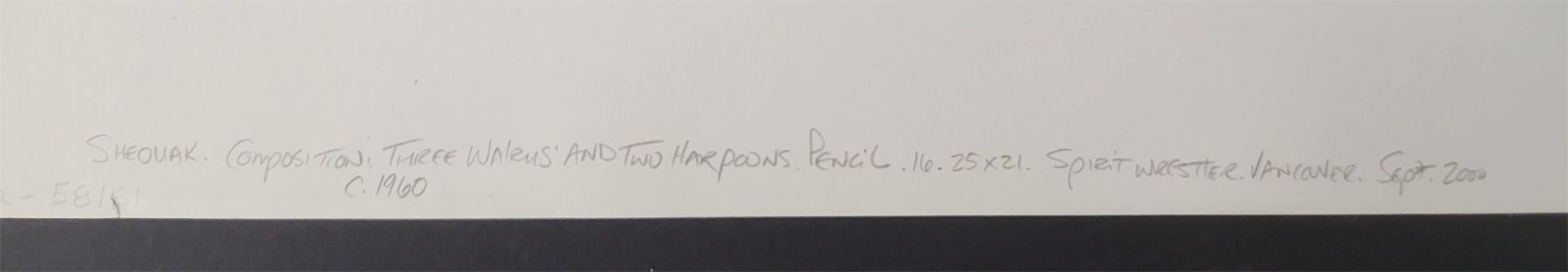 "THREE WALRUS' AND TWO HARPOONS" BY SHEOUAK - PENCIL - CIRCA 1960